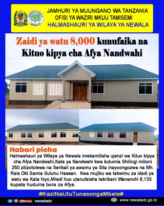 Halmashauri ya Wilaya ya Newala imekamilisha ujenzi wa Kituo cha Afya Nandwahi kwa kutumia shilingi milioni 250 zilizotolewa na Serikali ya Awamu ya Sita inayoongozwa na Rais Dkt. Samia Suluhu Hassan. Kwa mujibu wa idadi ya watu katika Kata ya Nandwahi, mradi huo utanufaisha takribani wananchi zaidi ya 8,133 wanaotarajiwa kupata huduma bora za afya karibu na makazi yao.