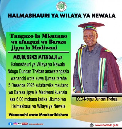 TANGAZO LA MKUTANO WA BARAZA JIPYA LA MADIWANI