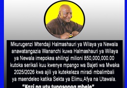 Mkurugenzi Mtendaji wa Halmashauri ya Wilaya ya Newala anawataarifu wananchi wote kuwa Halmashauri ya Wilaya ya Newala imepokea kiasi cha shilingi 850,000,000.00 kutoka Se...
