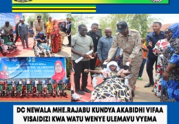 Mkuu wa wilaya ya Newala Mhe.Rajabu Kundya amekabidhi vifaa saidizi kwa watu wenye ulemavu katika Halmashauri ya wilaya ikiwemo viti vya magurudumu 7 magongo,baiskeli za mataili matatu...